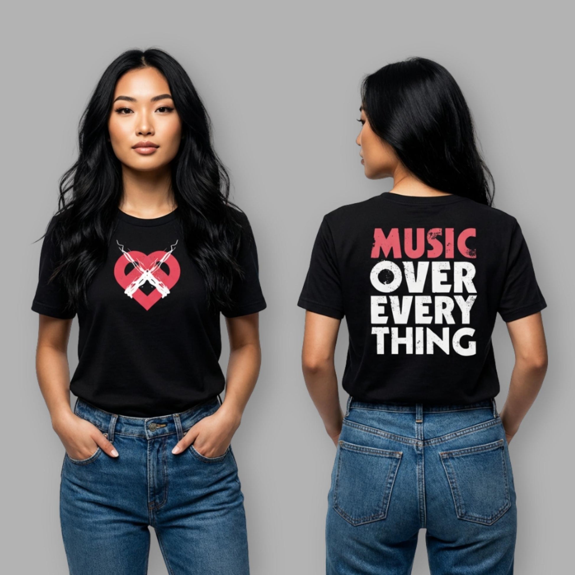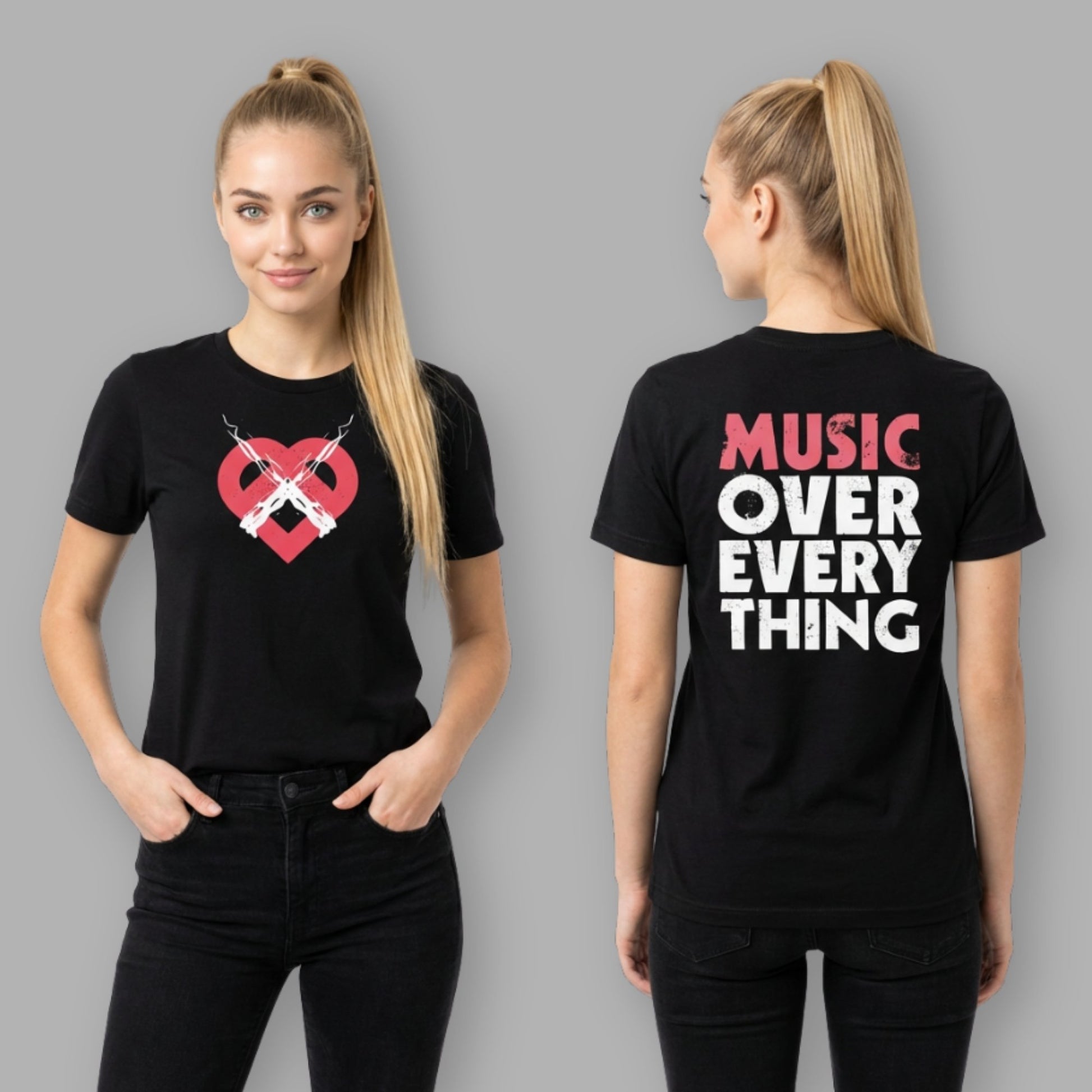 This is one for all the house-music fans. Featuring a signature yellow heart on the chest and our "Music Over Everything" manifesto across the back, this staple tee is the ultimate house music essential. Built for the booth and the dancefloor alike, it captures the raw energy of the tech-house scene. Soft, lightweight, and designed with enough stretch to keep you moving through the longest sessions, it’s more than just a shirt—it’s a staple of the culture. This t-shirt is everything you've dreamed of and more. It feels soft and lightweight, with the right amount of stretch. It's comfortable and flattering for all.