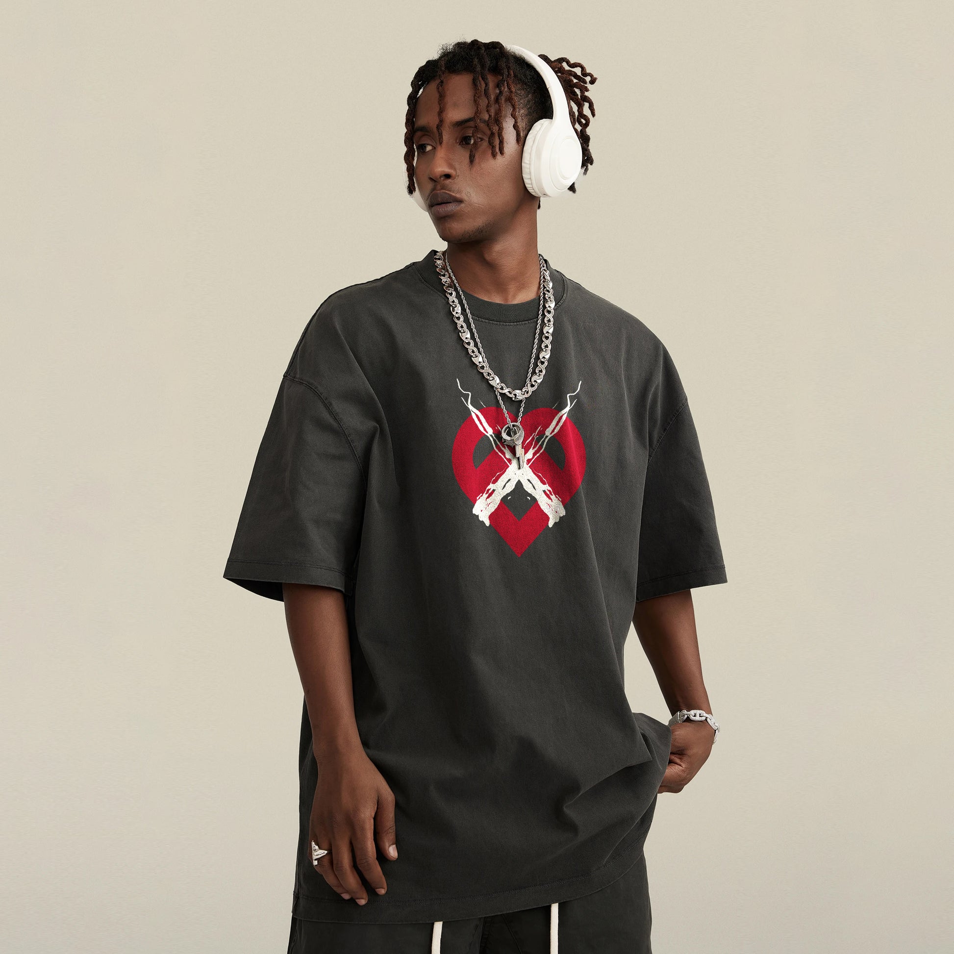 It’s a clean, graphic piece that works anywhere—easy to wear, easy to style, and made to hold up. The oversized cut and washed finish give it that broken-in feel without losing shape, thanks to heavyweight cotton and solid construction.